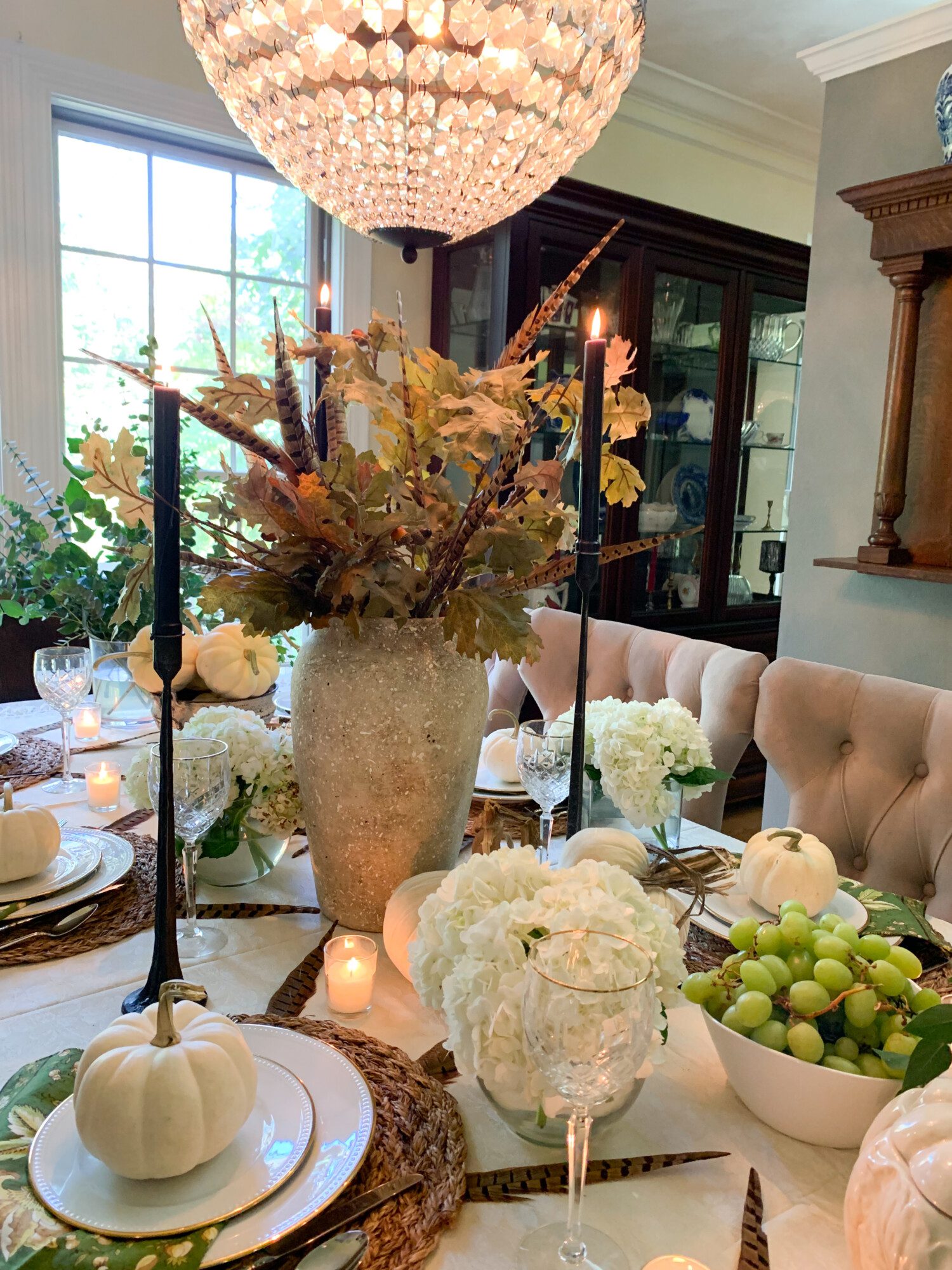 Setting the table is important but doesn’t have to be overblown. Choose rich Fall colors, like reds, greens, and browns, incorporate these tones through table linens, napkins, and centerpieces. You can also choose a neutral or monochromatic color scheme; these tones can work as well. The great thing is there are no rules. Do what you love. The table can be set at least a week in advance. Fresh flowers can be added to the setting a day or two before.