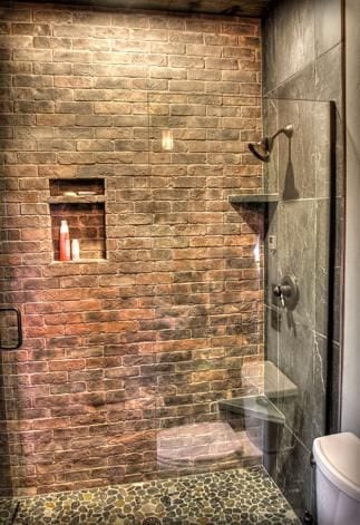 Brick, we LOVE brick. There is nothing better than seeing old architecture filled with original brick walls. Original brick is always beautiful and we will figure out a way to incorporate it into any design. But, if you don’t have original brick, adding brick to a floor or wall can make it look like it’s been there for years. Brick tiles are a great choice because they are durable, can be set in a multitude of patterns, and resist slipping, water, dirt, and scuffs. Whether your home is old, or a new build, consider brick as a design option. In addition, if you do have original brick and are worried about damaging it, consider using glass. As a result, you can still see the beautiful brick, but you keep it protected. Here are some interesting ways to use brick, or brick tiles in your home. These are definitely nothing ordinary.