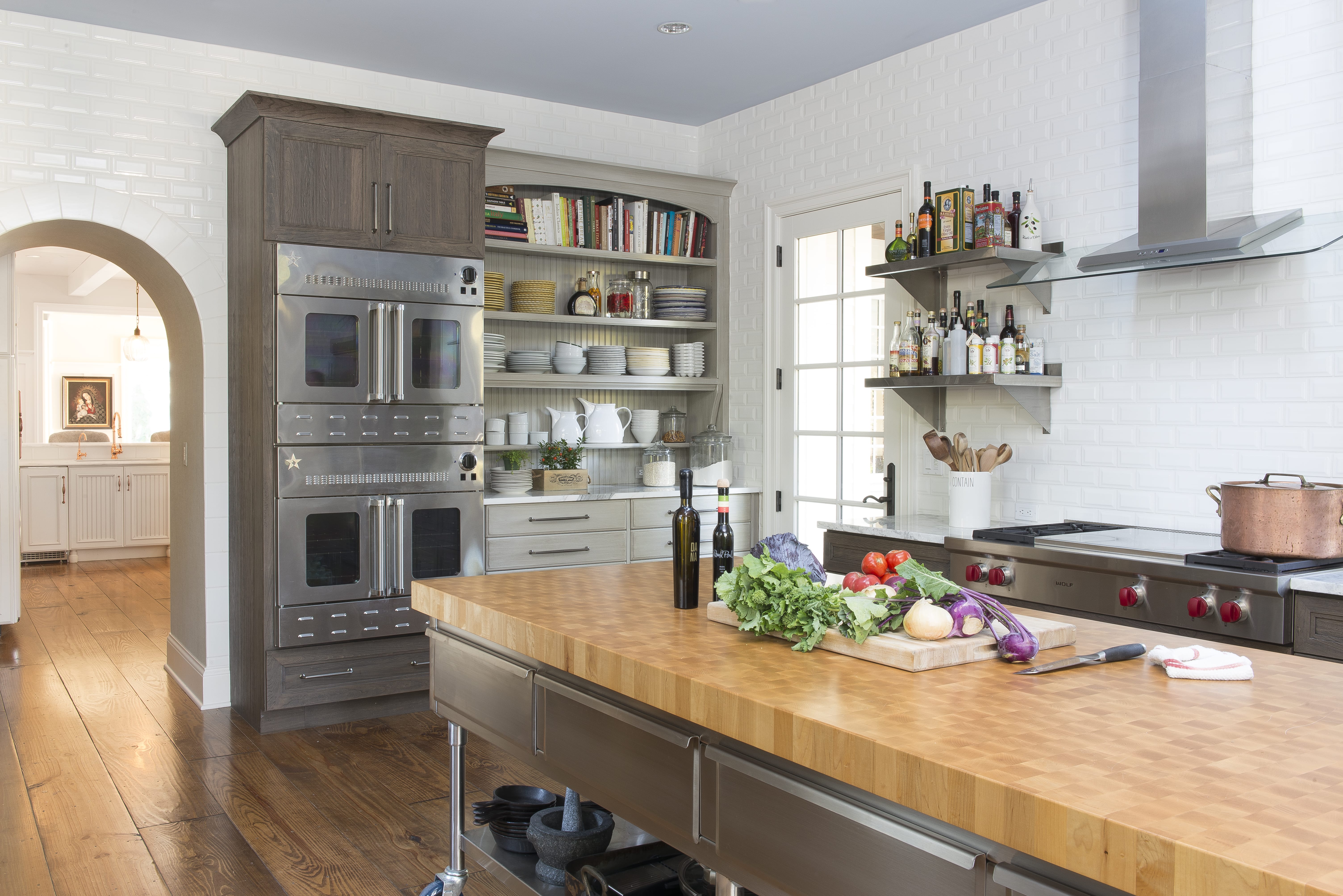 - Herringbone subway tile in the kitchen