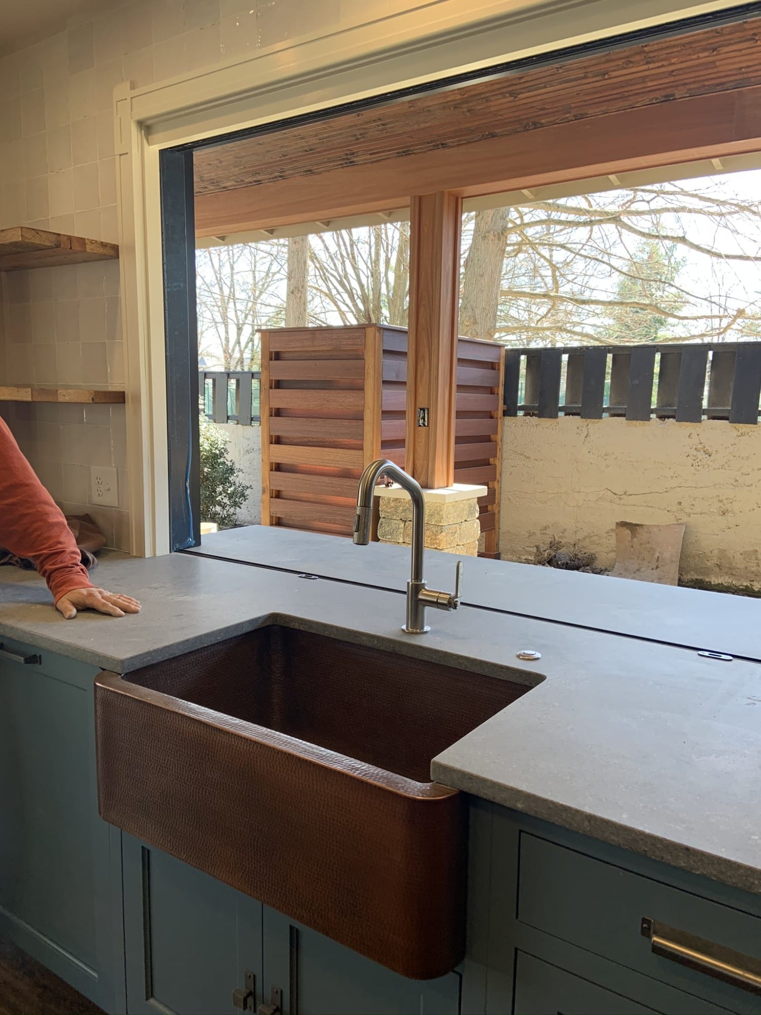 In collaboration with Designer Wendy, the family created a space that has evolved to have many different functions while still ringing true to their pool house dreams. From an outdoor shower, retractable glass doors, and impromptu bar, the pool house has become a sanctuary. Even with these modern details, the casita mirrors the age of their home.